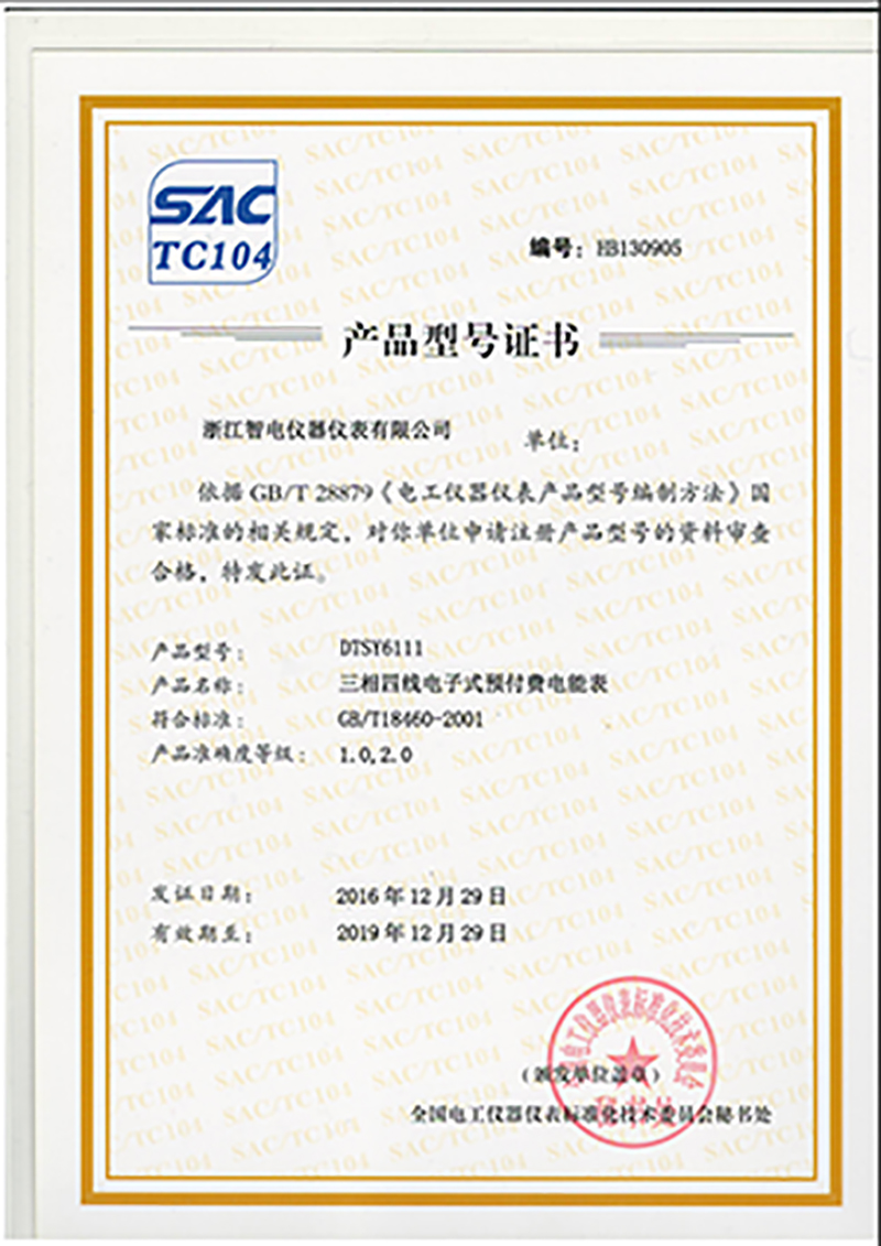 DTSY6111產(chǎn)品型號證書