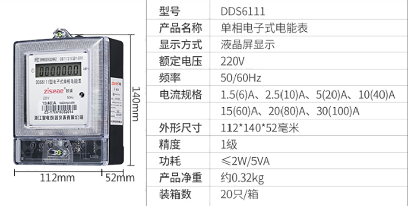 DDS6111型單相電子式電能表,由于采用集成電路和SMT制造工藝,使之測量準確度,穩定性等均得到了可靠保證.適用計量額定頻率為50Hz,額定電壓為220V的單相交流有功電能.