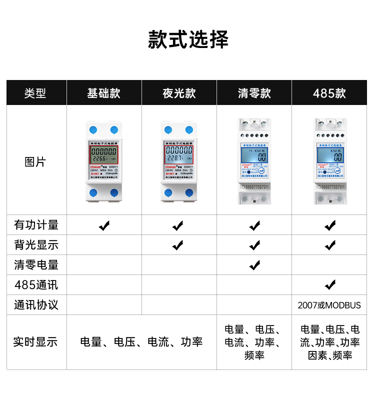 2、采用高品質(zhì)計度器顯示累計電量(6+1位),顯示清晰鮮艷直讀性好。