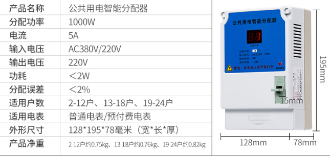 、智盛牌公共用電智能分配器,是將公共樓道用電所消耗的電能(如樓道燈,對講防盜門等),自動分配到各受益用戶的電表中。每天輪流接通一戶電表,開機通電時第一戶電表隨機產(chǎn)生,達到公平分攤電費的目的,本款公共用電智能分配器的特點:外置保險絲更換方便,可實時顯示均分到哪戶。